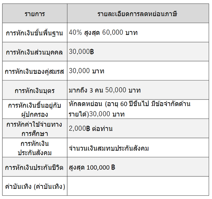 การลดหย่อนภาษีเงินได้หลัก