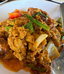 ◆おすすめメニュー/フライドシーフードとハーブ炒め 240฿